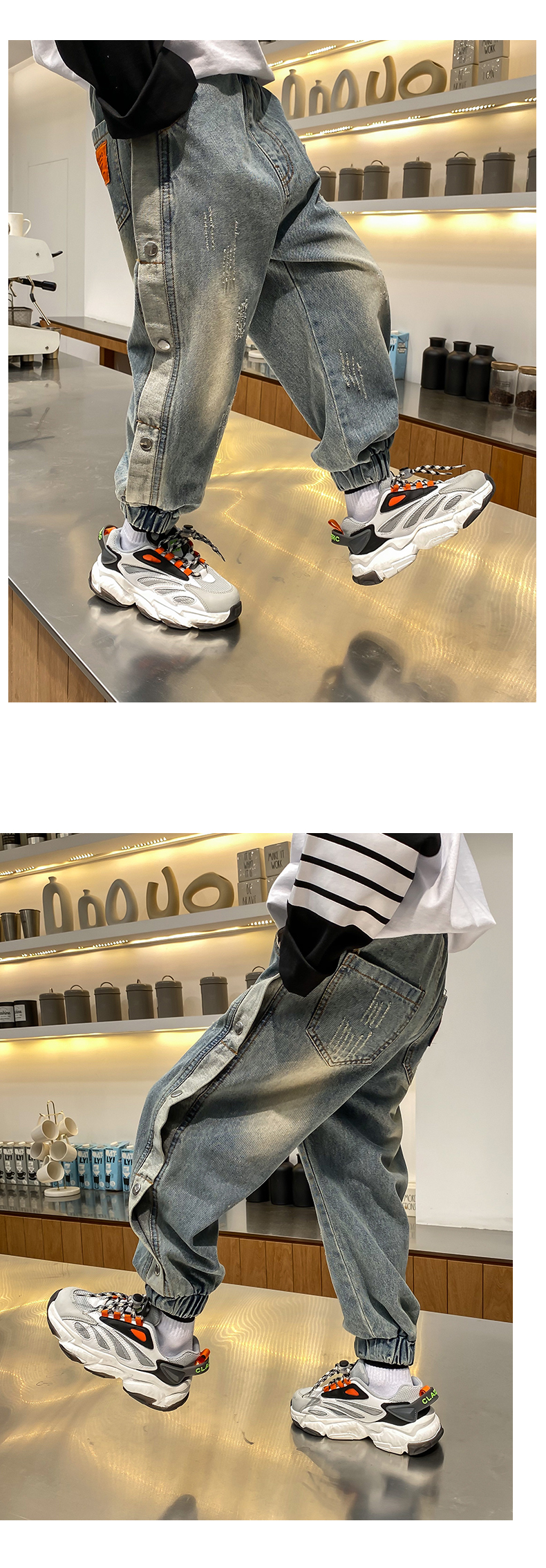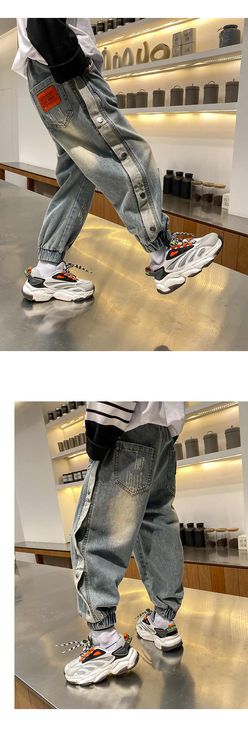 童裝男童洋氣邊扣牛仔長褲兒童春夏褲子2021春裝新款中大童韓版潮
