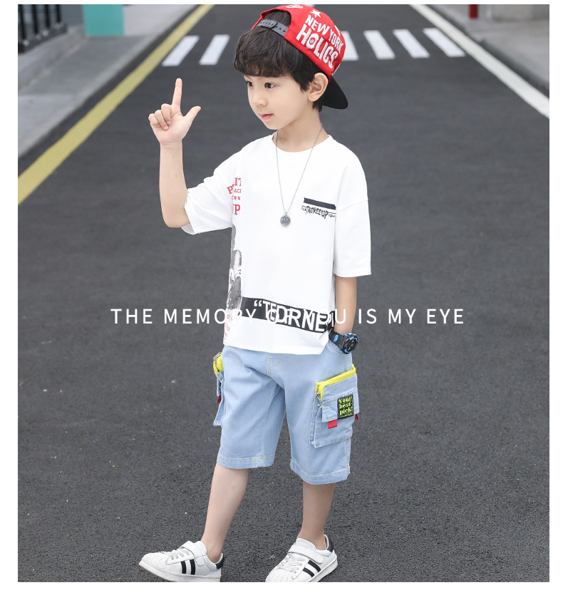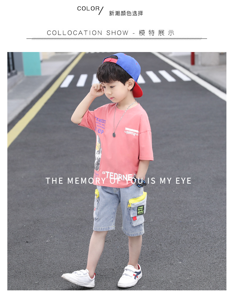 浪莎童裝兒童男童短袖套裝2021新款夏裝中大童兩件套寶寶卡通套裝