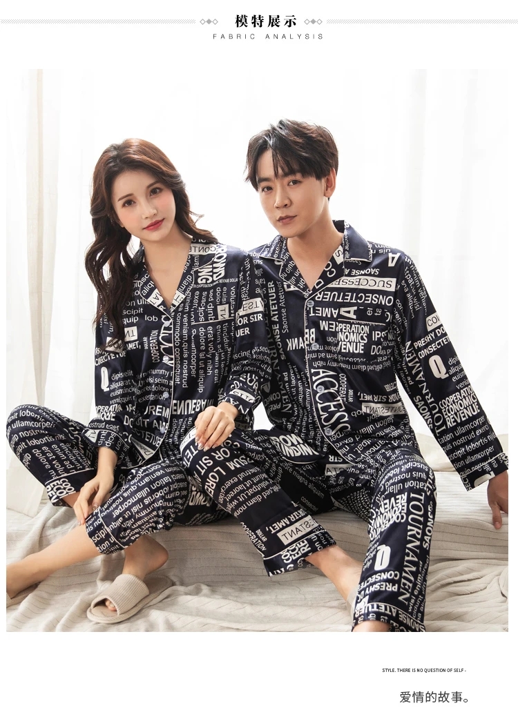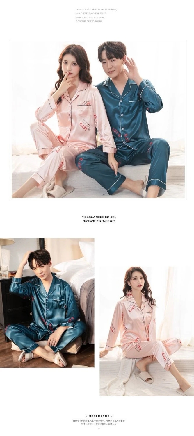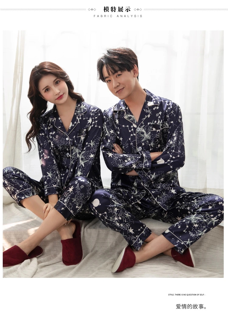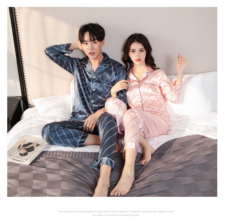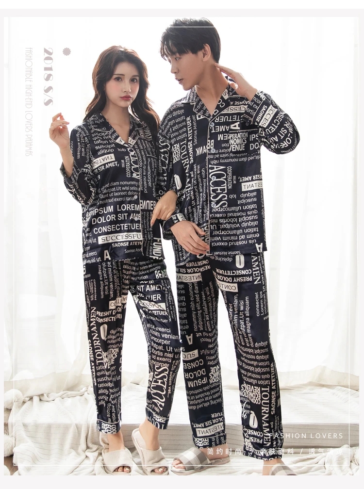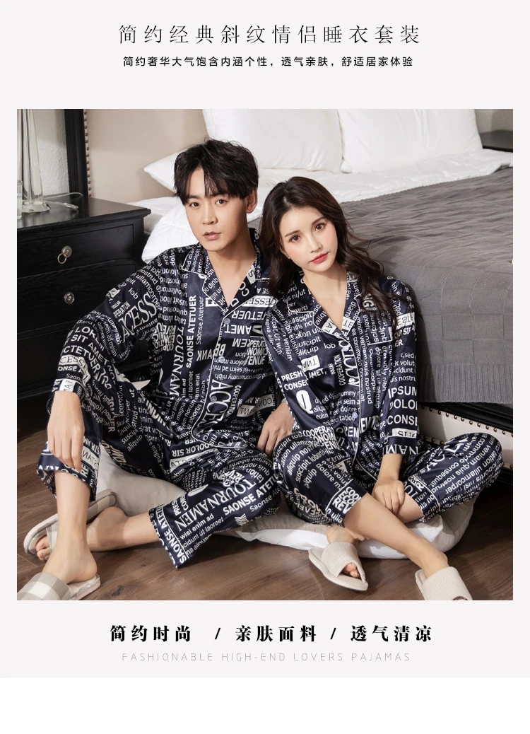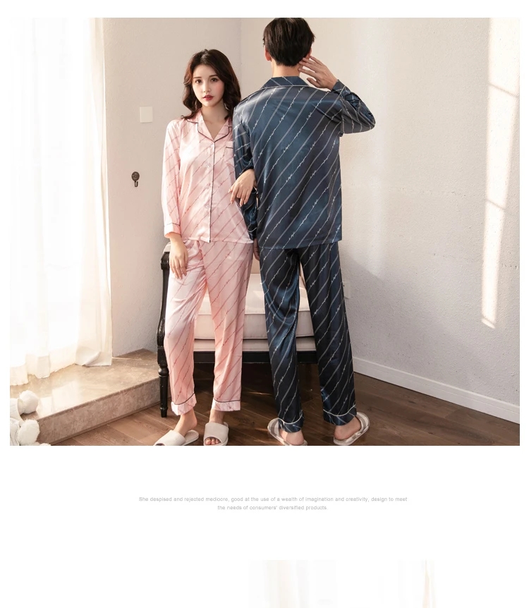 浪莎春夏季新款情侶睡衣韓版長袖仿真絲時尚開衫家居服冰絲套裝