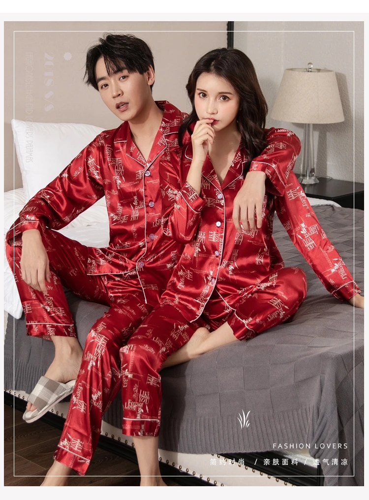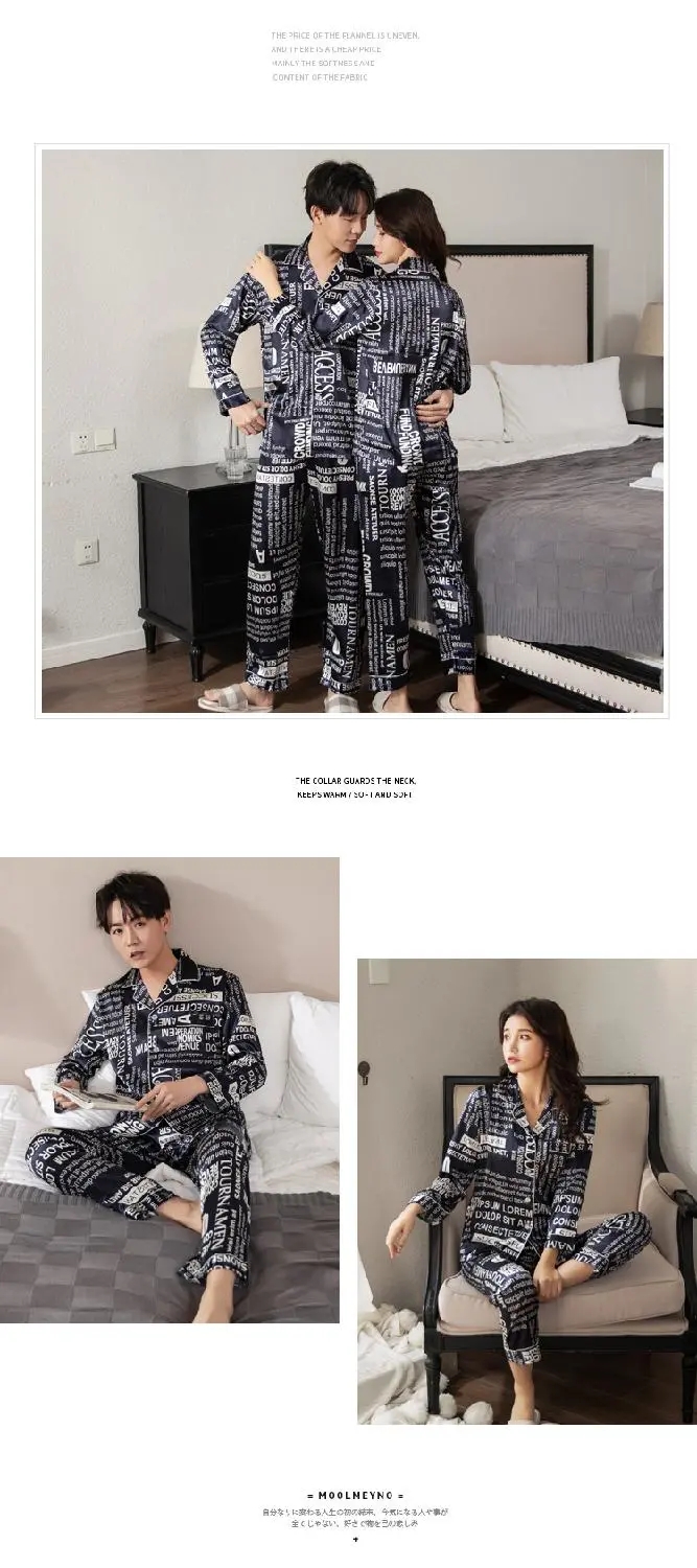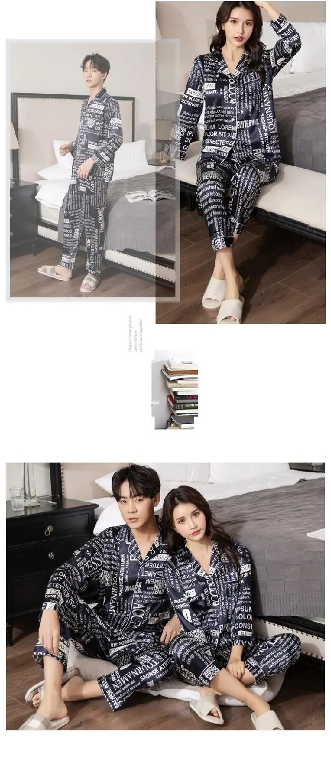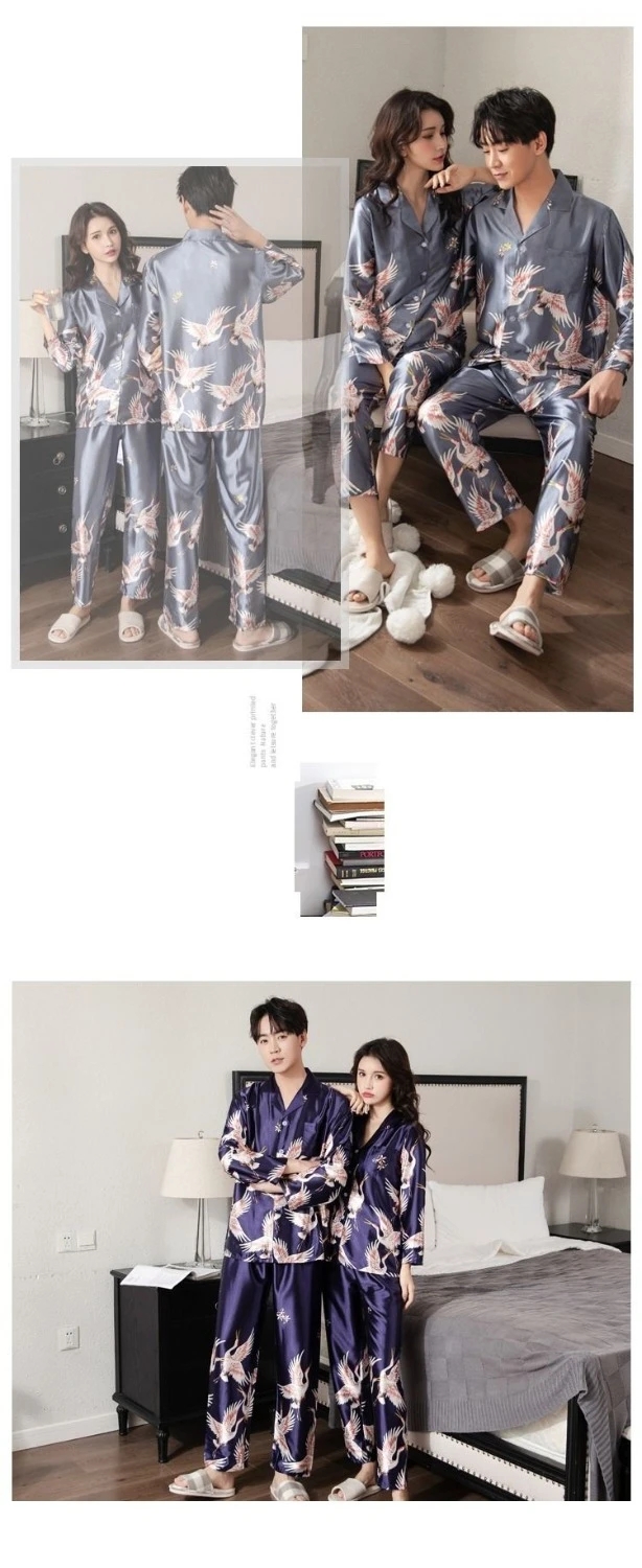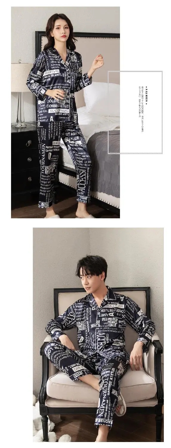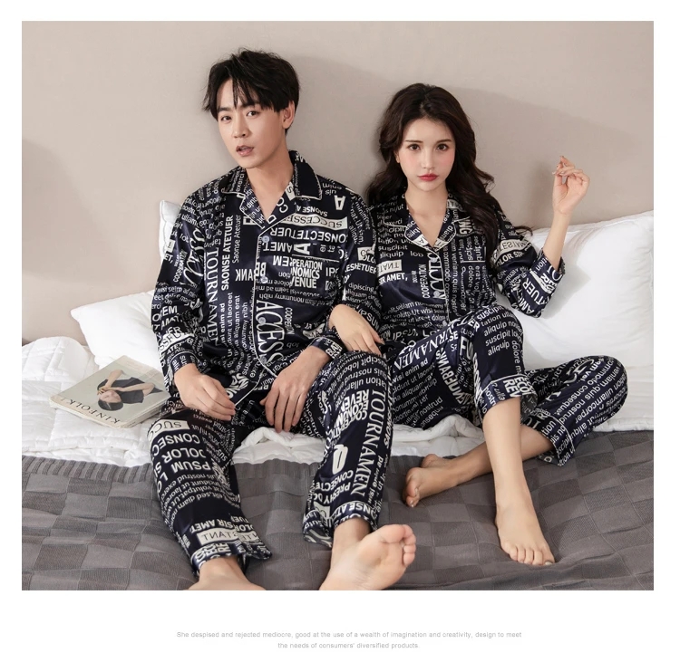 浪莎春夏季新款情侶睡衣韓版長袖仿真絲時尚開衫家居服冰絲套裝