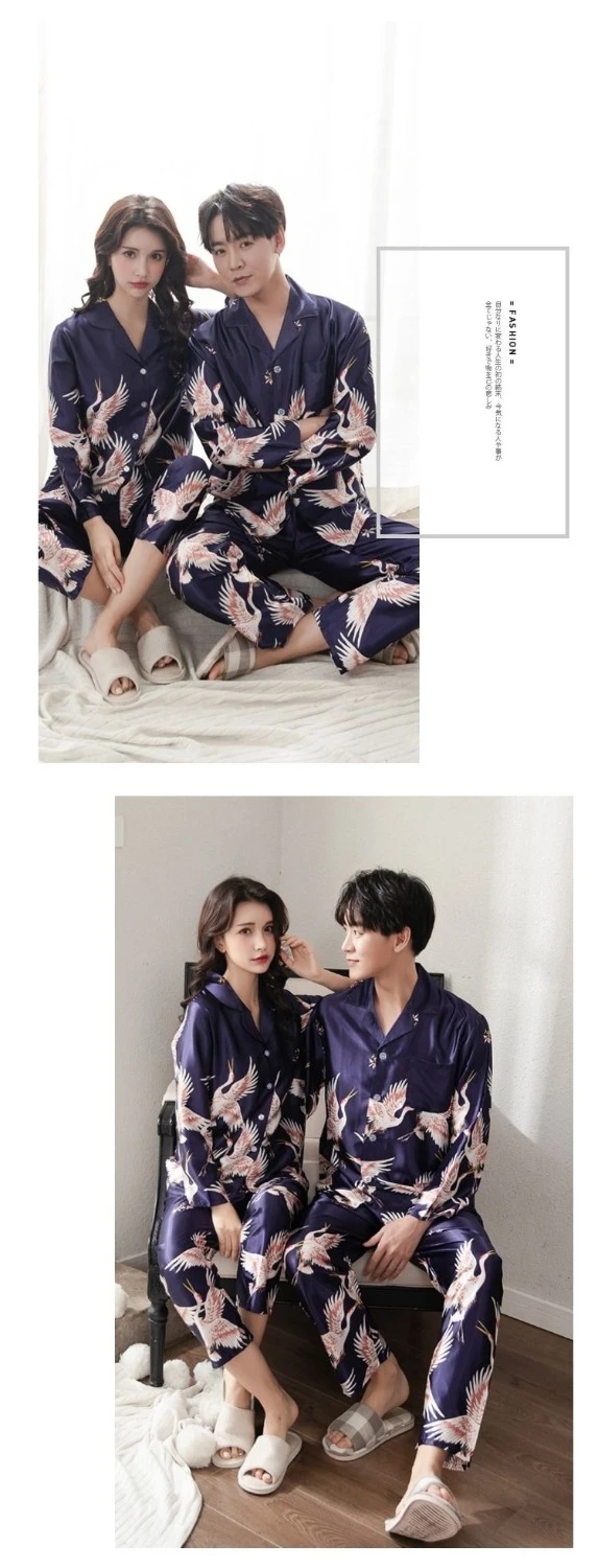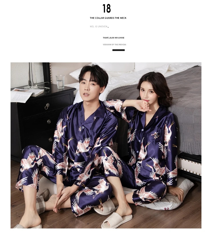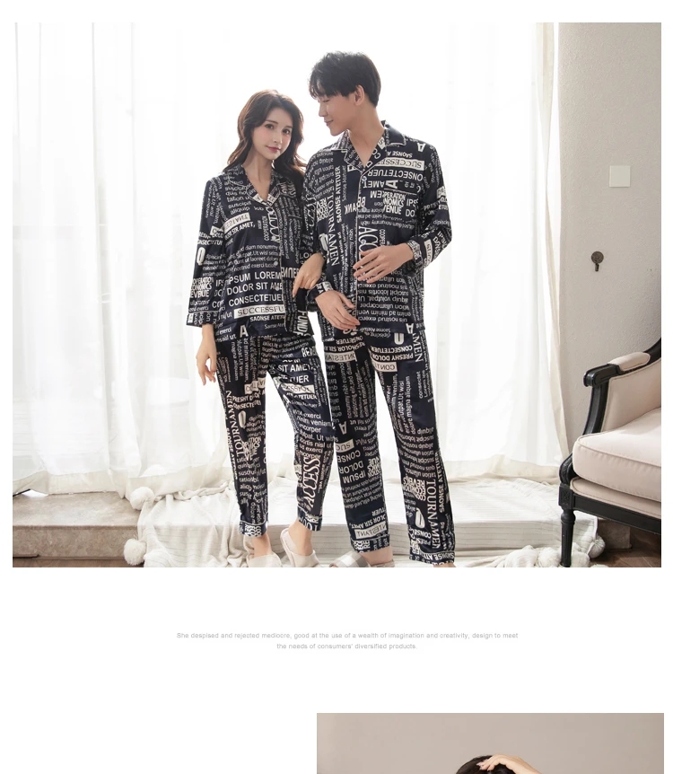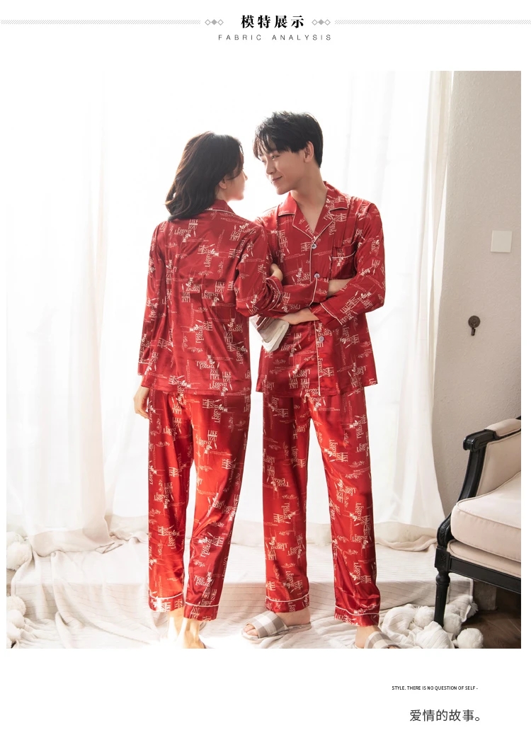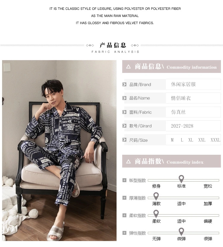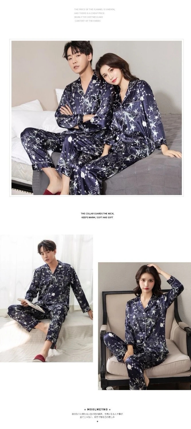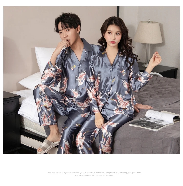 浪莎春夏季新款情侶睡衣韓版長袖仿真絲時尚開衫家居服冰絲套裝