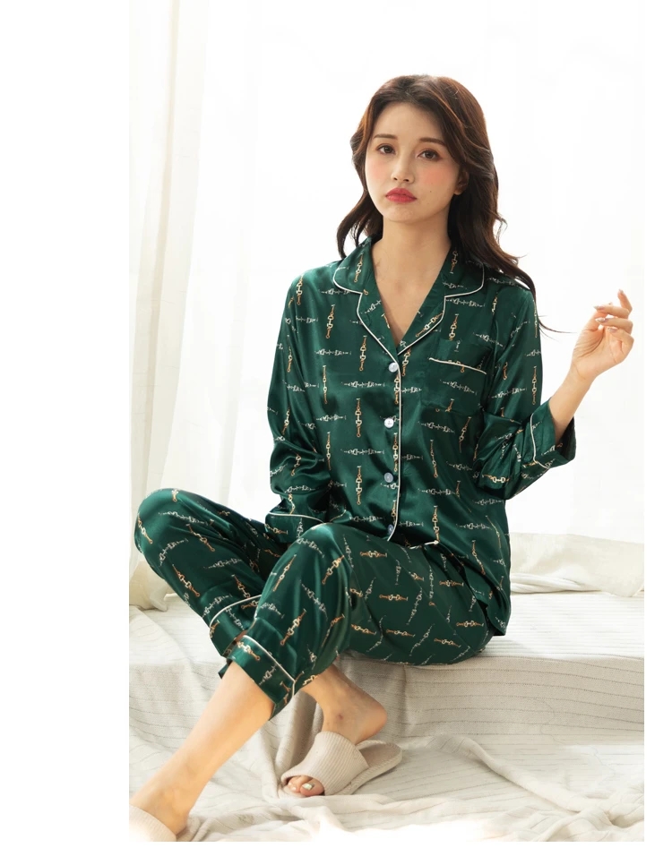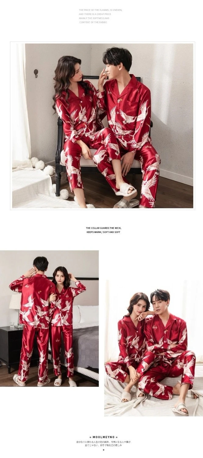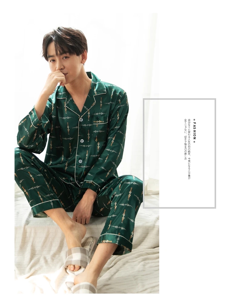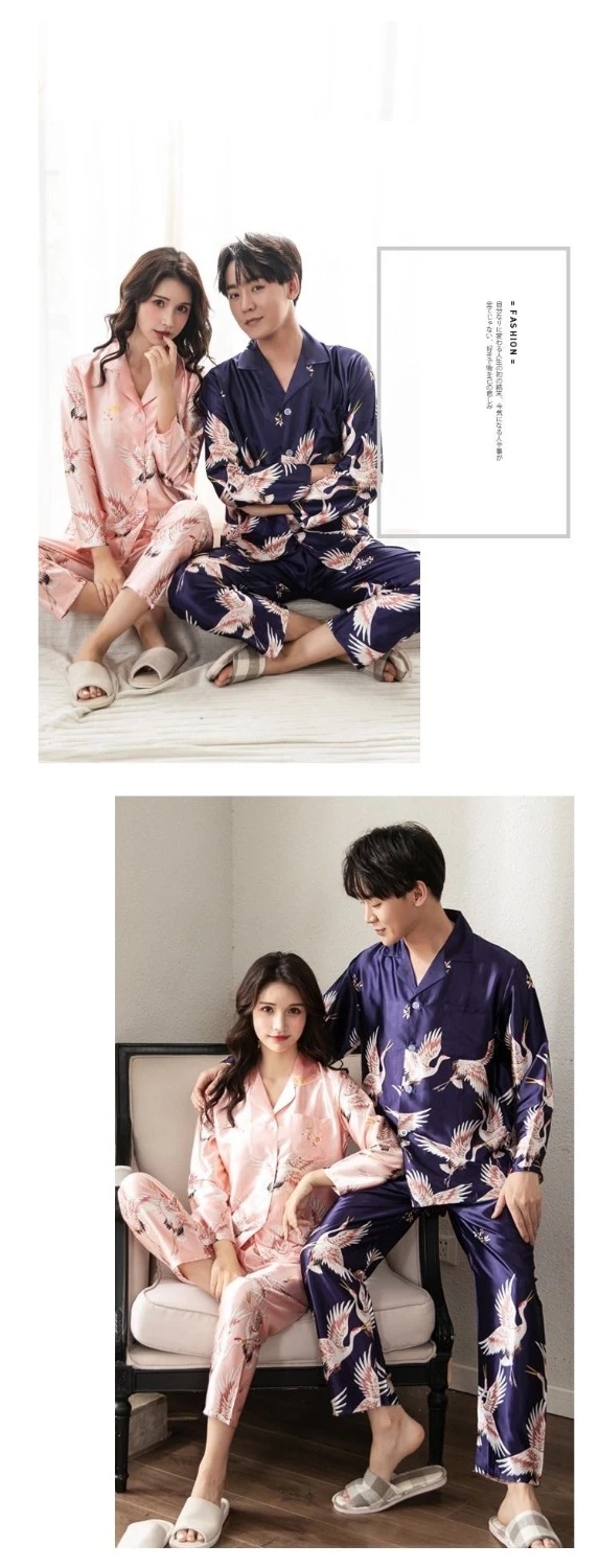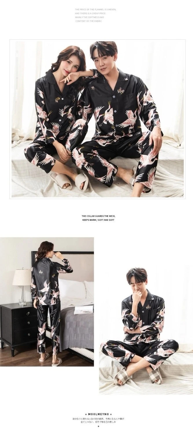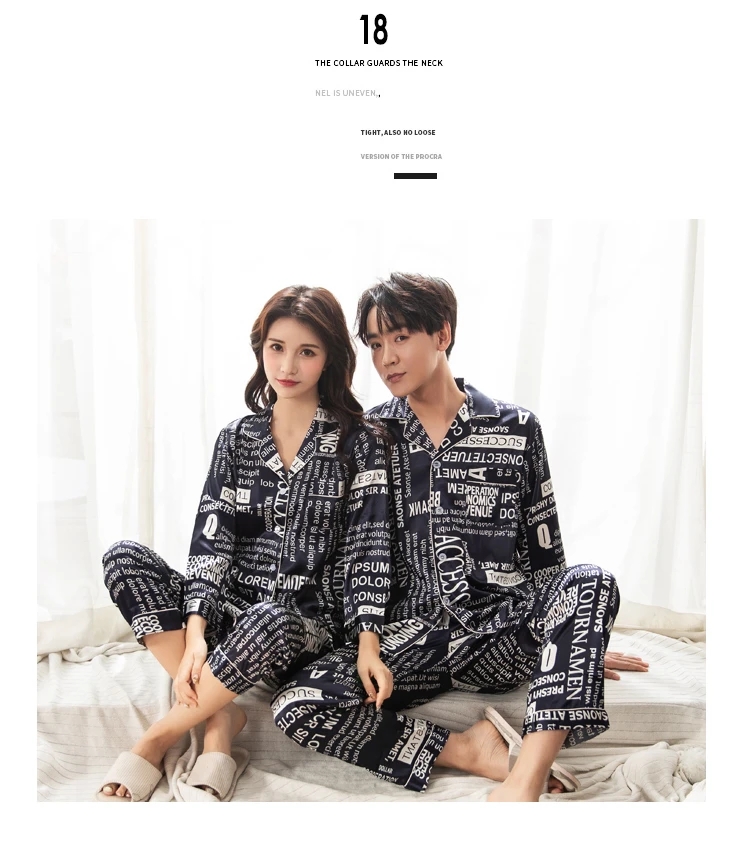 浪莎春夏季新款情侶睡衣韓版長袖仿真絲時尚開衫家居服冰絲套裝