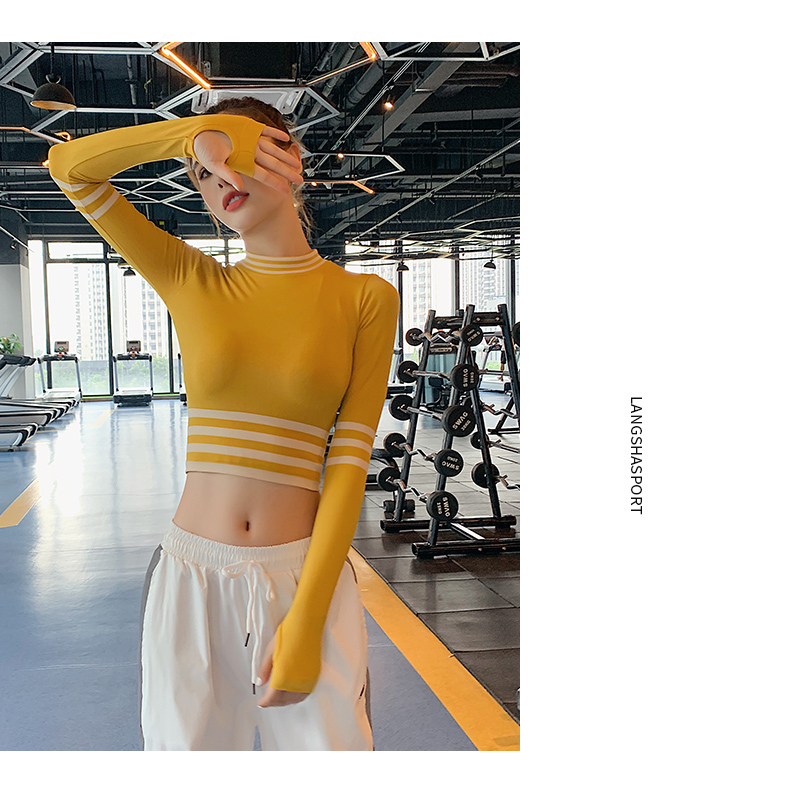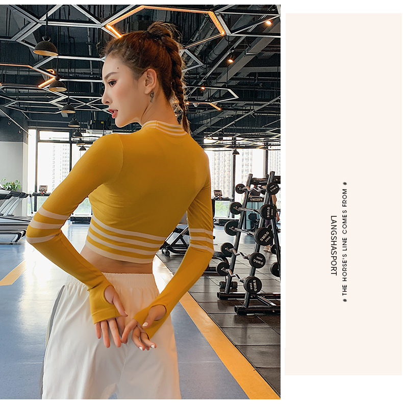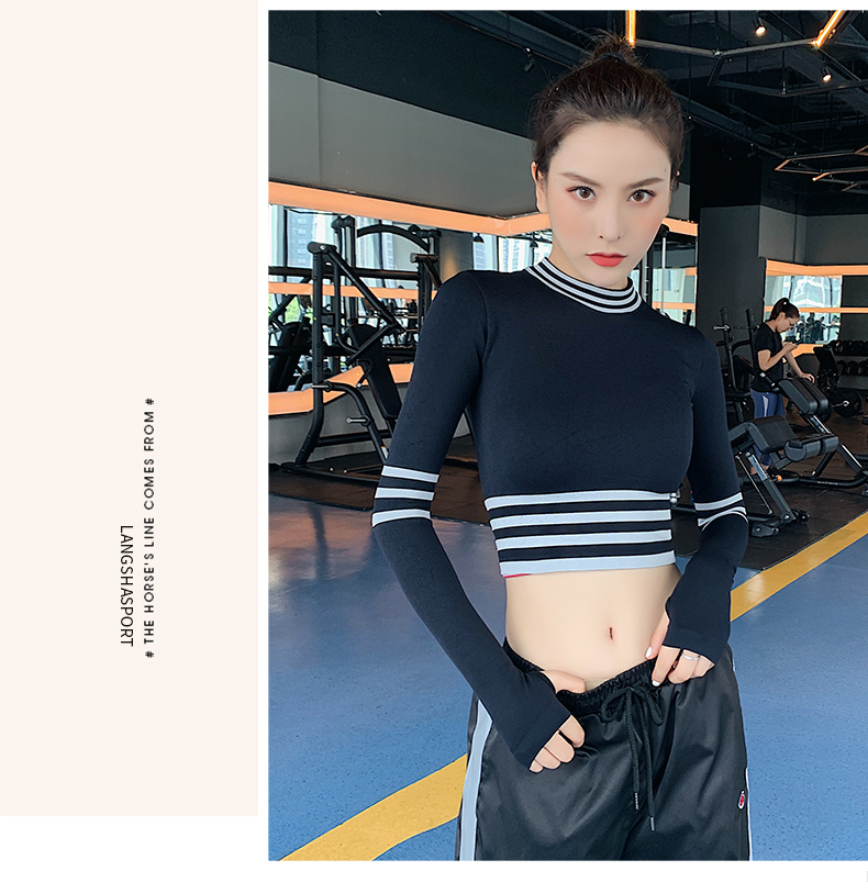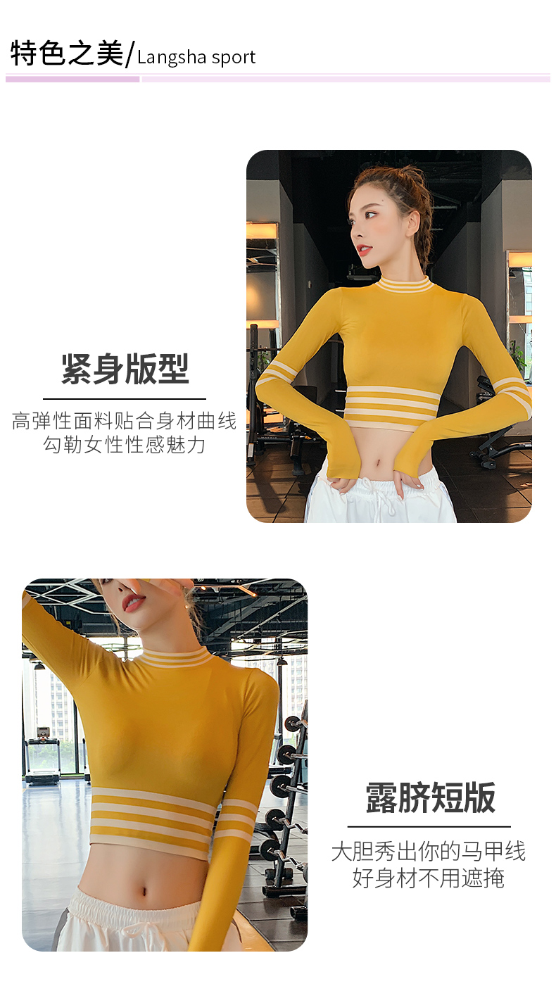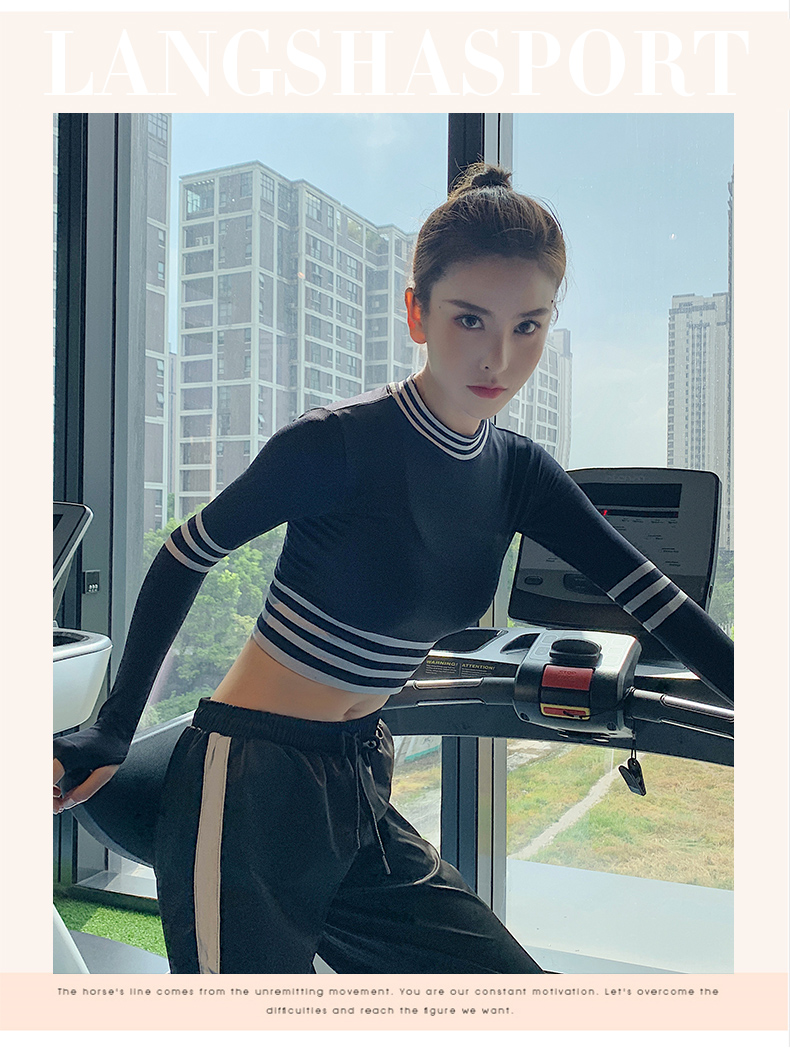 浪莎長袖健身衣女露臍性感運(yùn)動(dòng)T恤速干緊身春秋跑步瑜伽服上衣