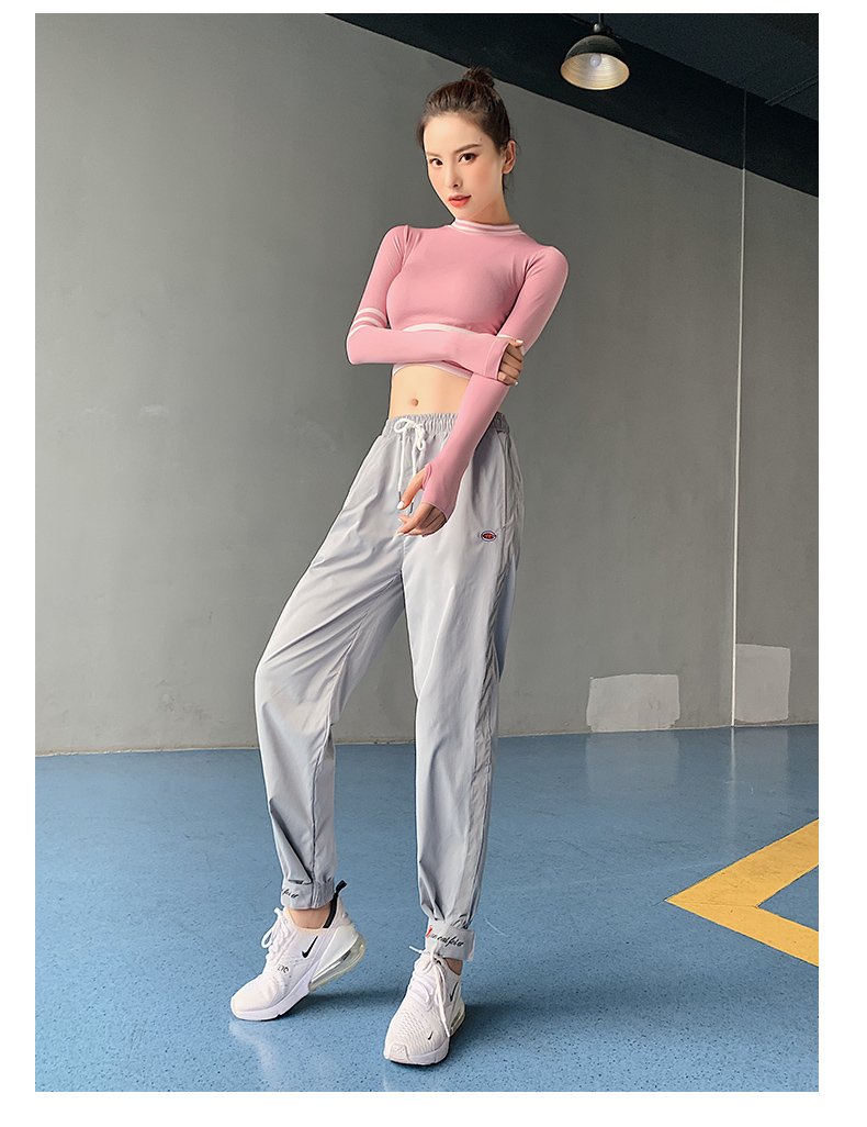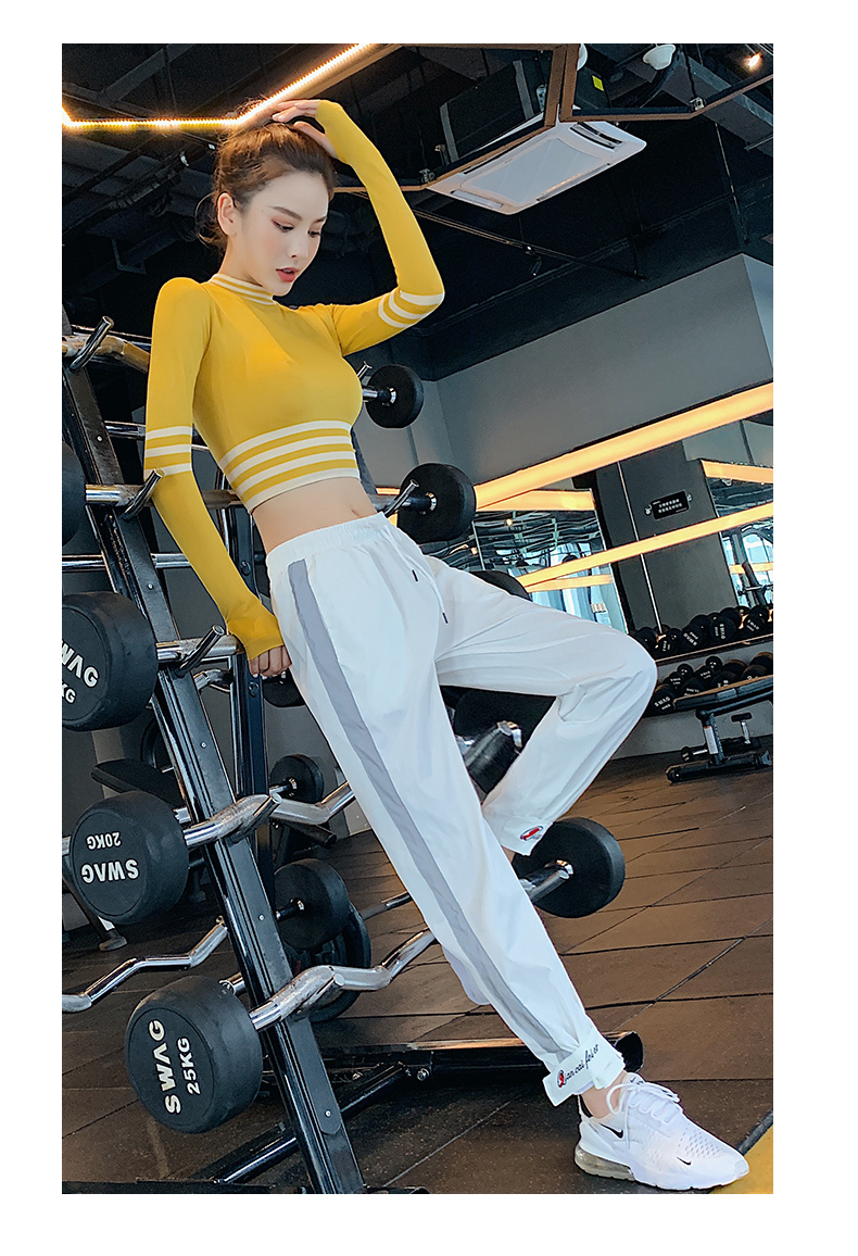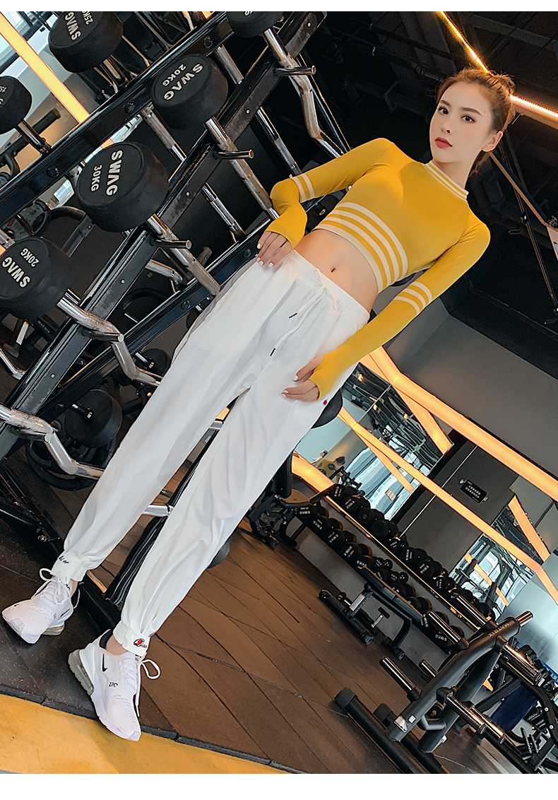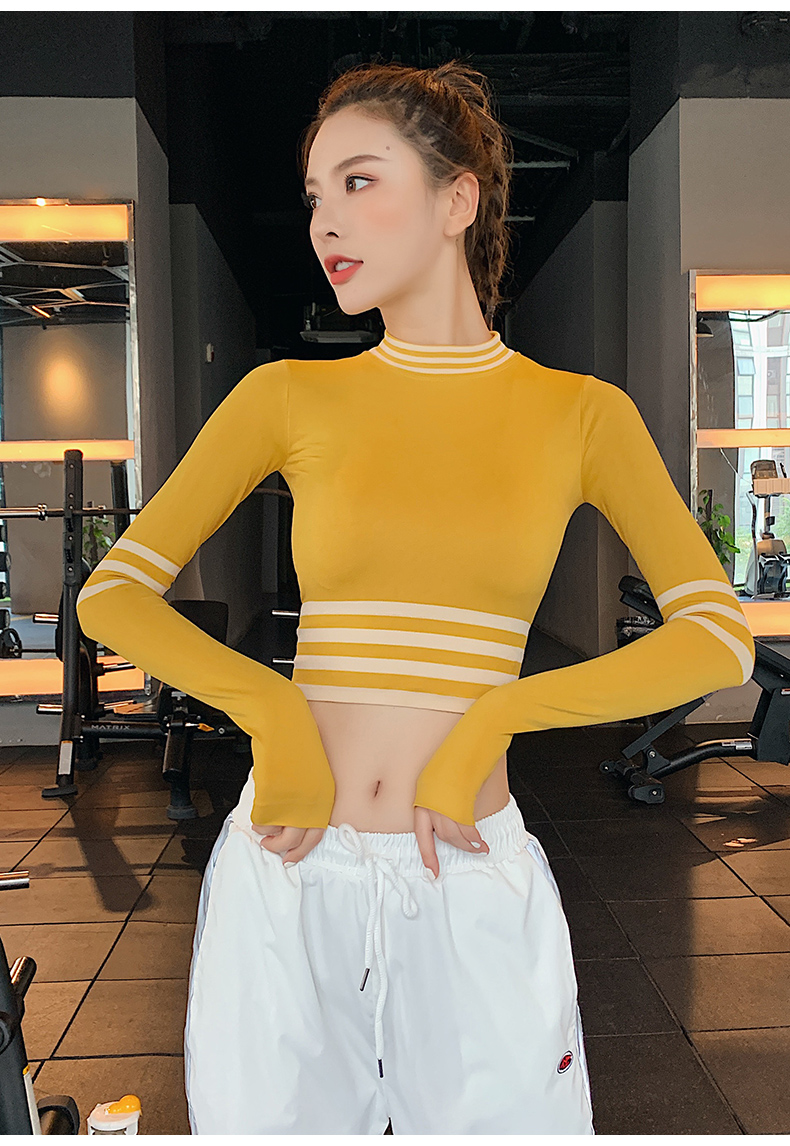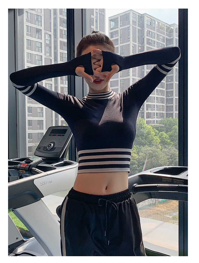 浪莎長袖健身衣女露臍性感運(yùn)動(dòng)T恤速干緊身春秋跑步瑜伽服上衣